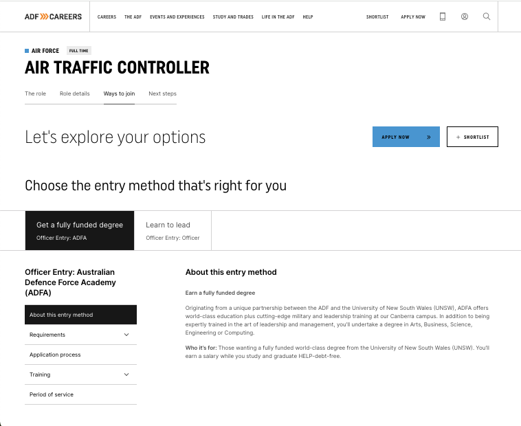 Around 1000 pages covered every aspect of joining the ADF. This included detailed information about each service, life in the ADF, study and training, events and experiences, real stories, parental and careers advisor information, frequently asked questions and perhaps the most challenging of all, simplifying the application process.